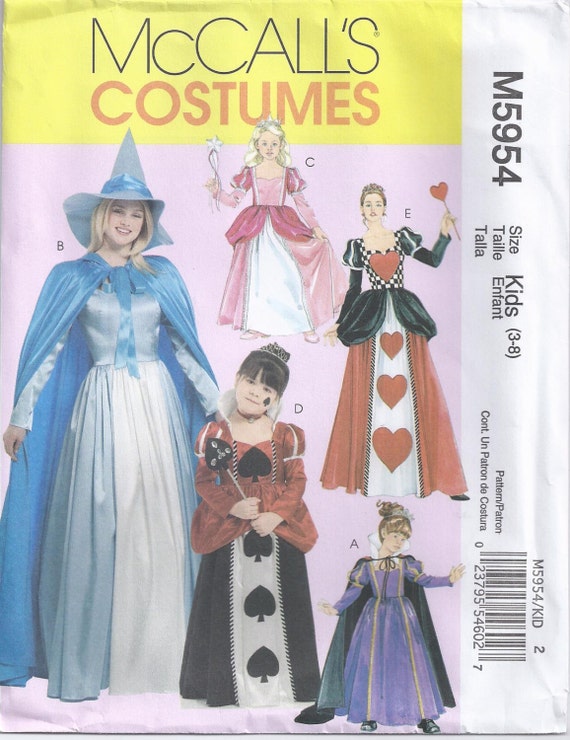 McCalls M5954 Size 3 4 5 6 7 8 Storybook Princess Queen Dress Cape And Witch Hat Childrens Halloween Costume Sewing Pattern 2009